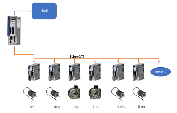 设备配置了6台AKD伺服驱动器,每台驱动器精准控制一台AKM伺服电机,分别负责主牵引轴驱动、转塔分度定位、打孔单元同步、收放卷张力控制、纠偏系统调整和切刀位置控制。AKD伺服驱动器采用先进矢量控制算法,响应时间低于10ms;可实现高精度调整,确保设备在高速运行时的动态响应速度和稳定性。